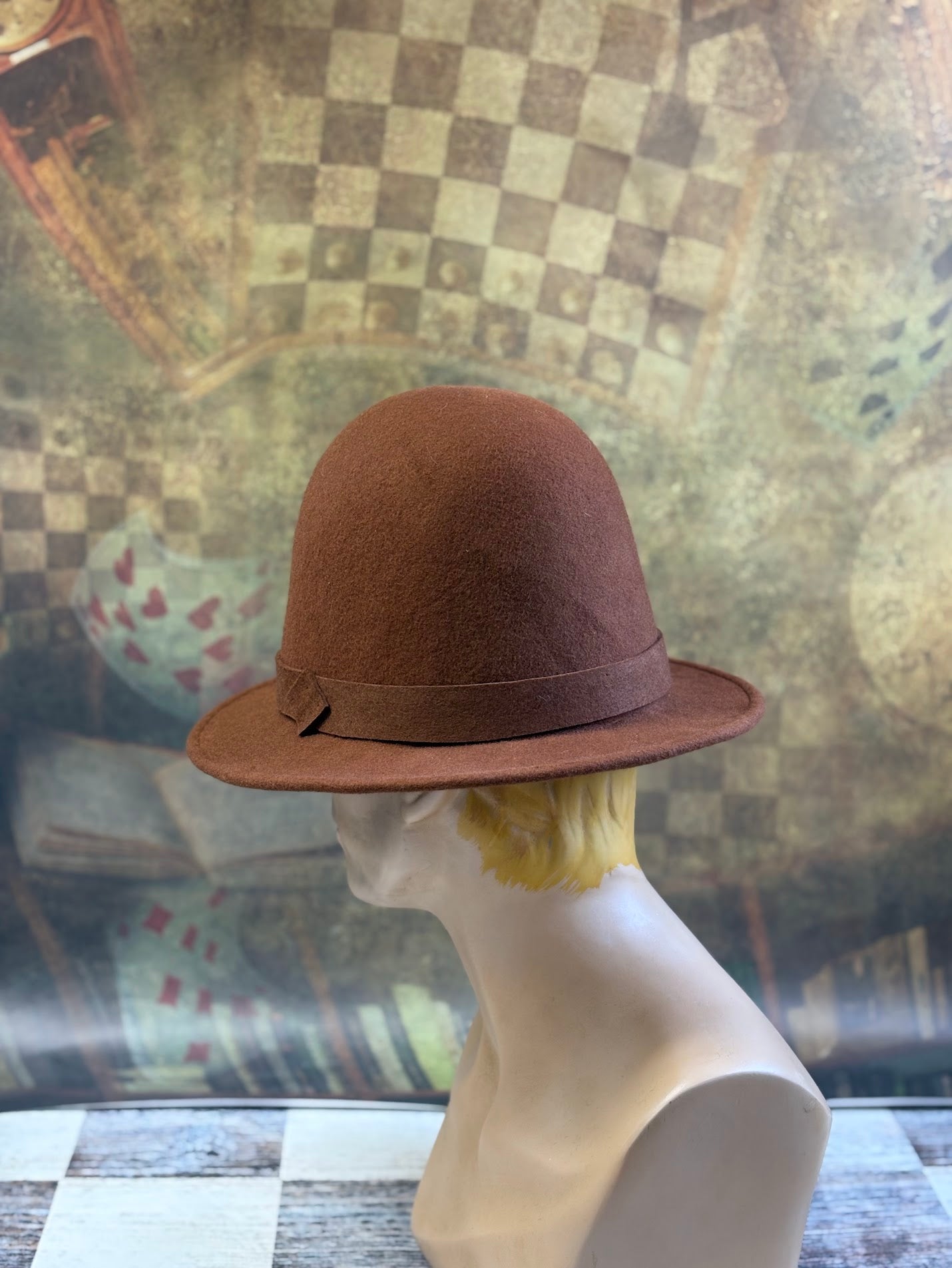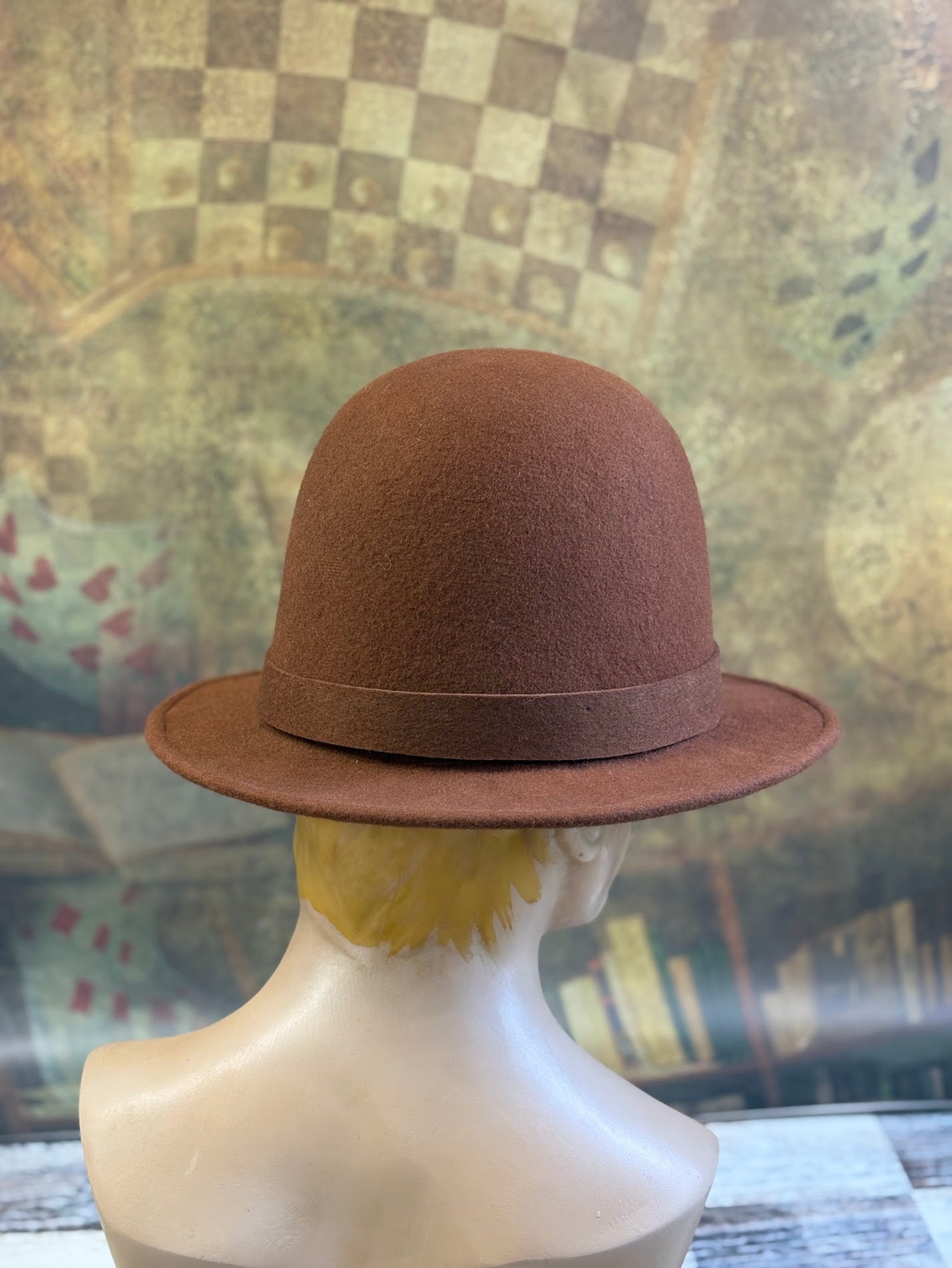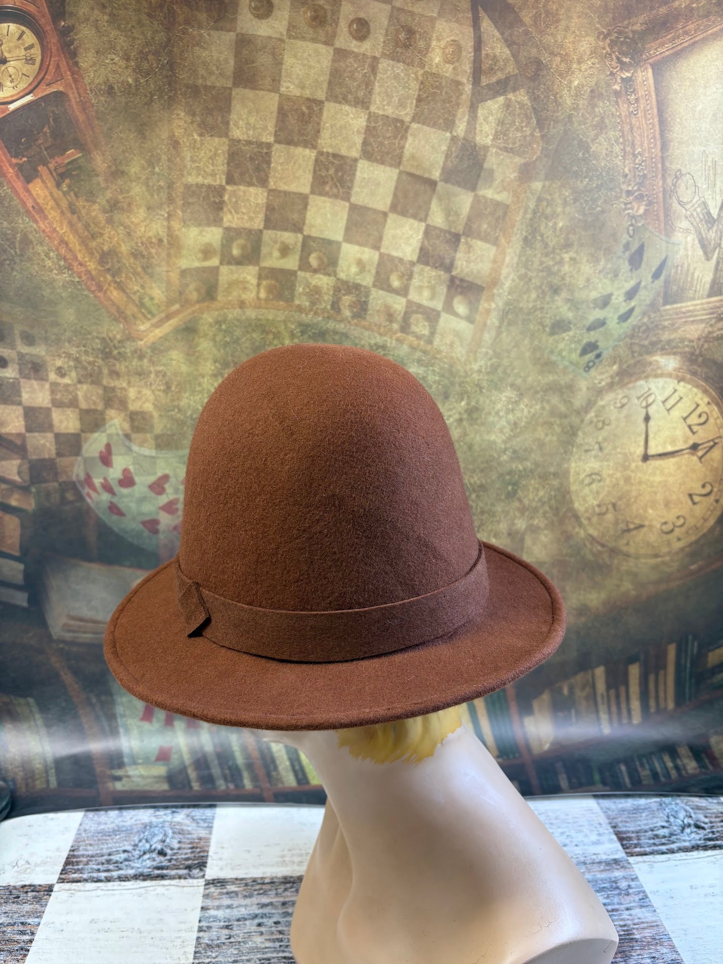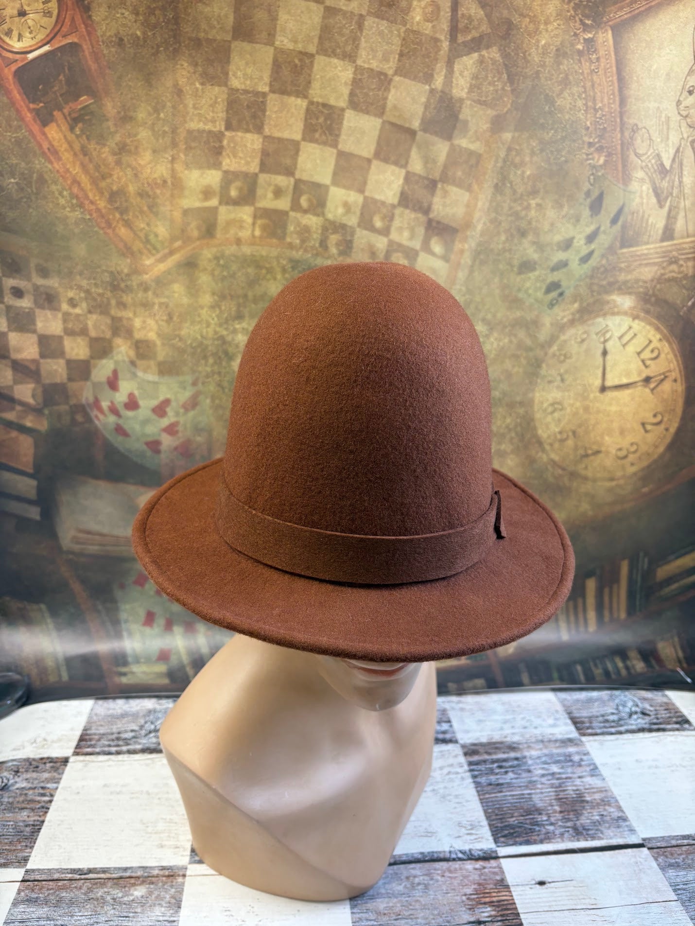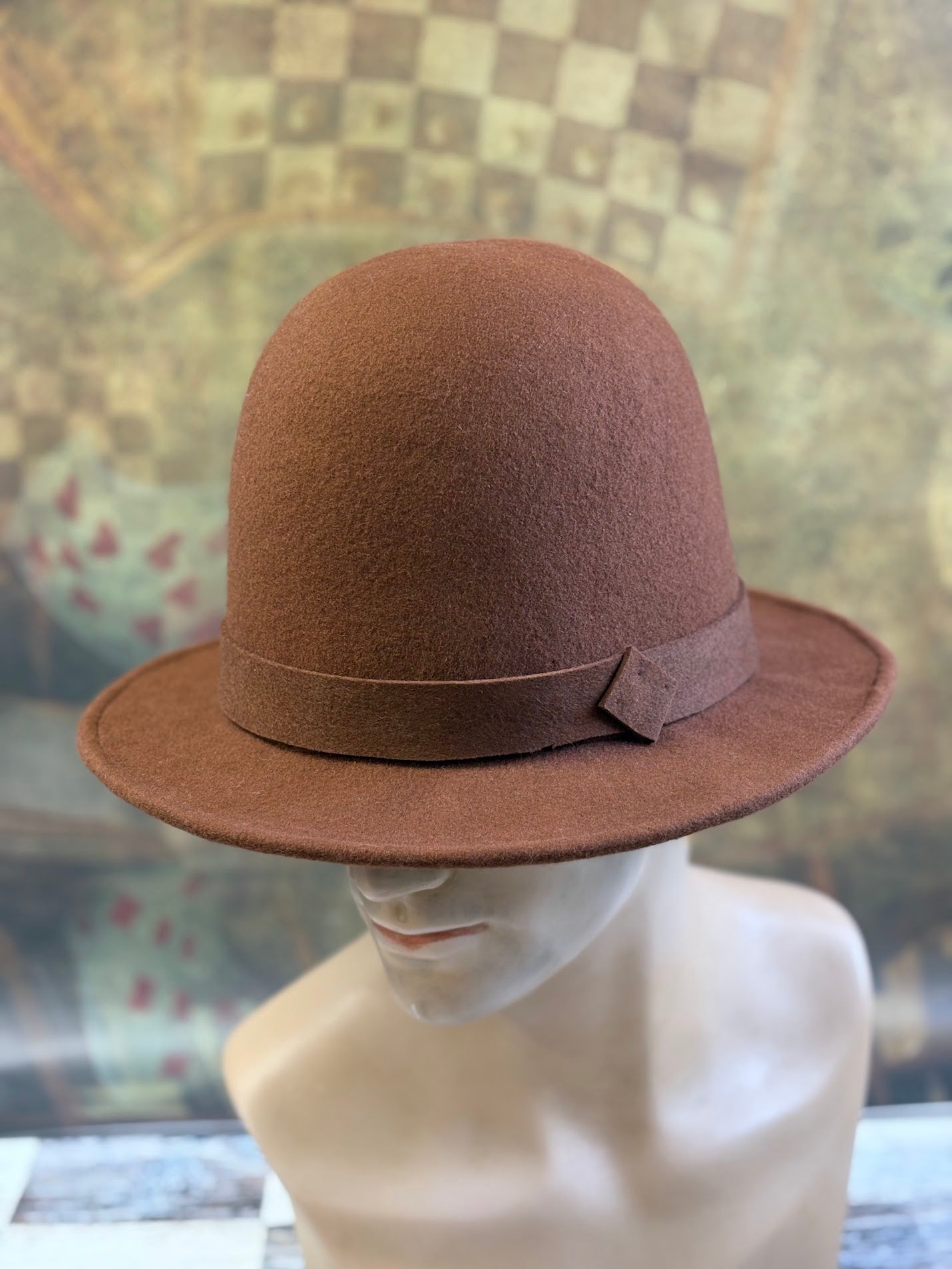 Each hat is individually shaped by hand on traditional wooden hat blocks in my studio, ensuring a unique and exquisite form that machine-made hats simply cannot replicate. The rich, earthy russet brown felt is selected for its quality and drape, providing both breathability and a luxurious feel.